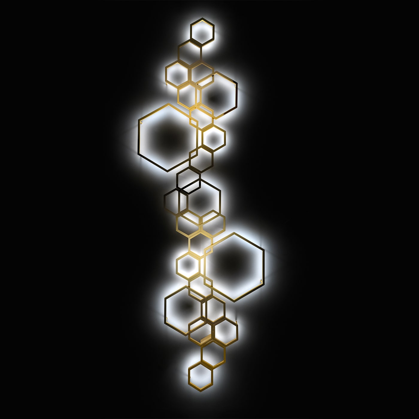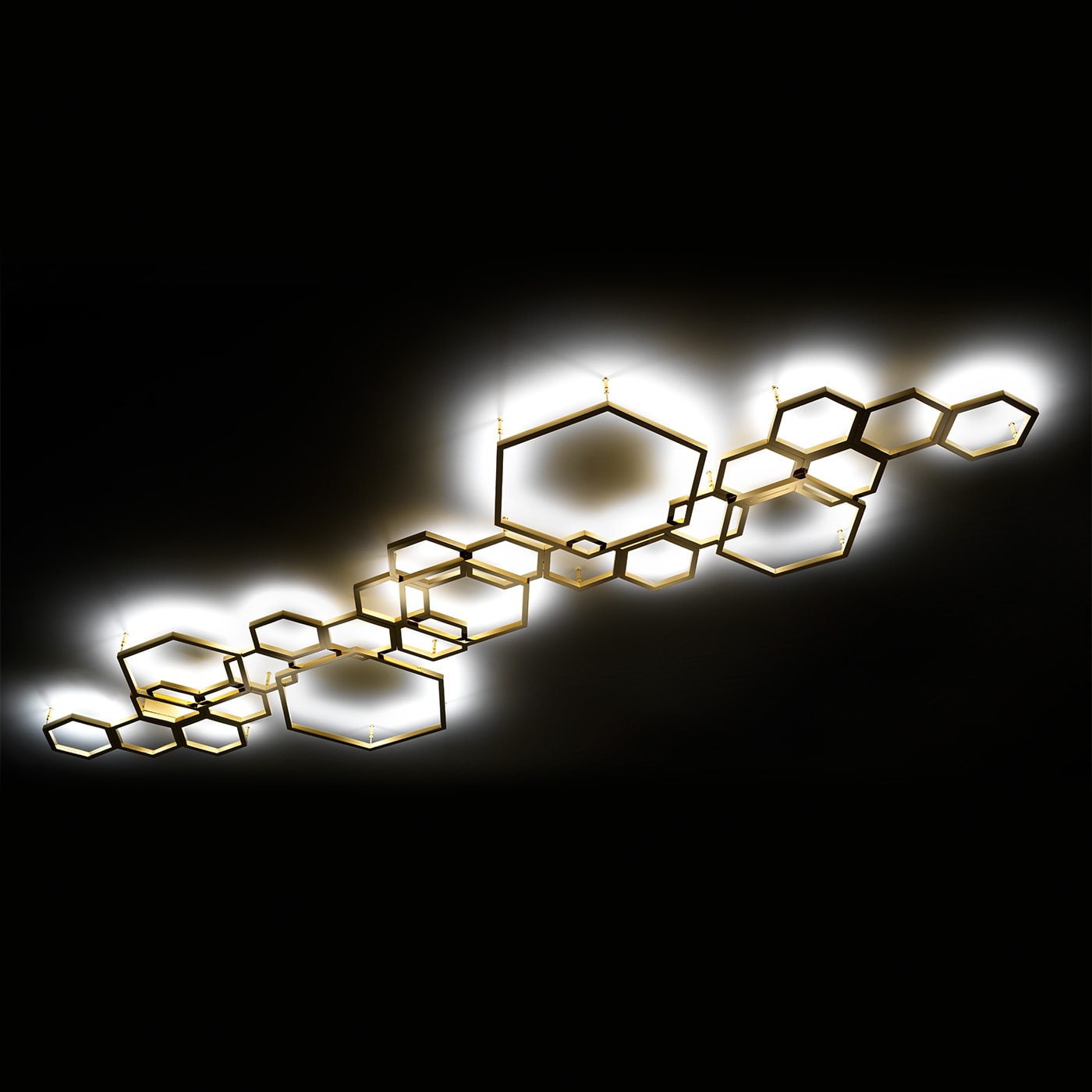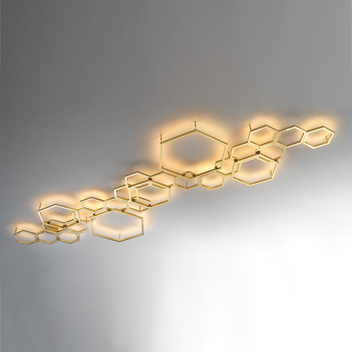 Hexagon Golden Wall Lamp by Il Paralume Marina, excellent Italian furniture brand.
