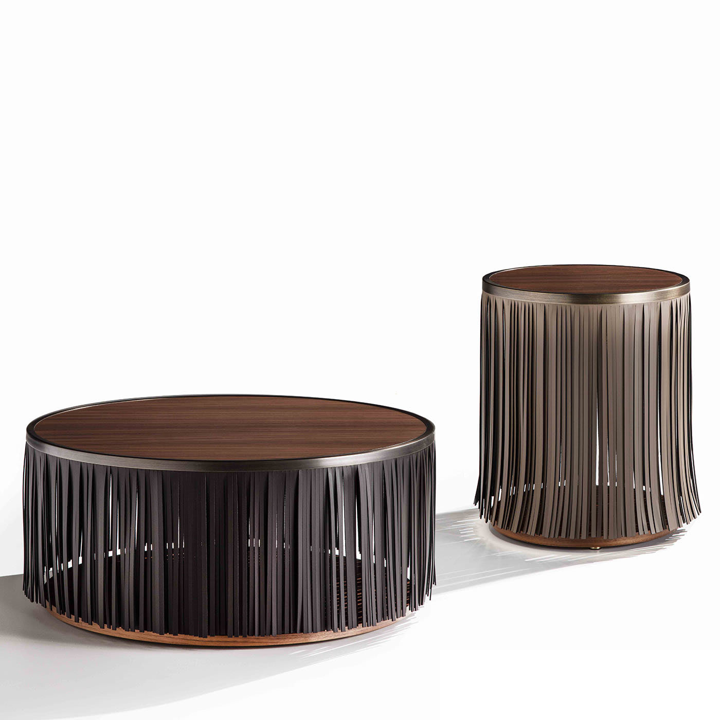 Indian Walnut Side Table with Gray Leather Fringe by Enrico Pellizzoni, excellent Italian furniture brand.