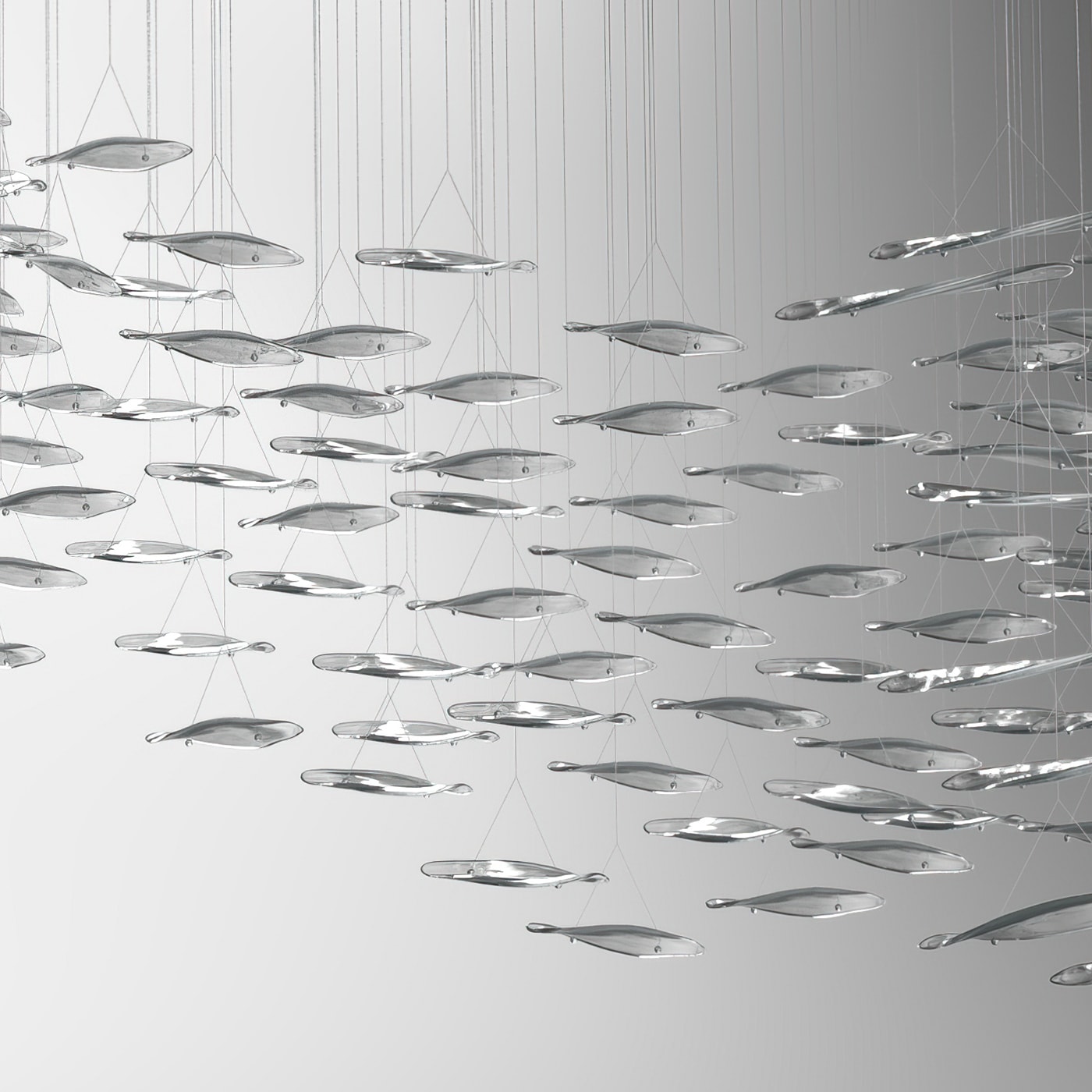 It’s a Grey glass chandelier hand made in Italy.